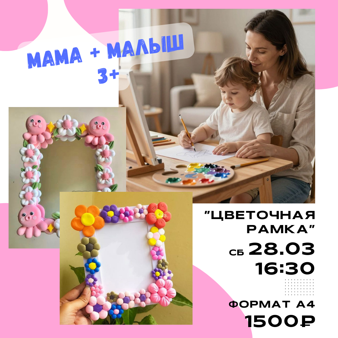 Мама и малыш "Цветочная рамка" из воздушного пластилина